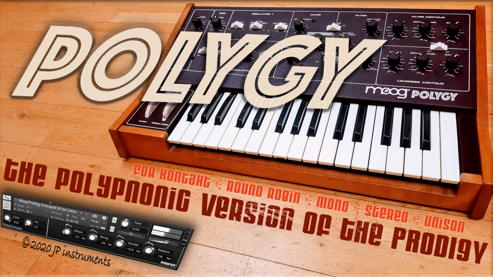 The Polygy is a Kontakt sample player of the Moog Prodigy that can be used in almost any daw. All keys were sampled in four layers round robin (i.e. four samples per note) and carefully looped.